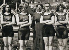 1912 දී පළමු වරට පිහිනුම් තරඟ සඳහා ඉදිරිපත් වීමට කාන්තවන්ට අවස්ථාව හිමි විය. එහි දී බොහෝ ක්රීඩිකාවන් වූල් වලින් නිම වූ දිග ඇඳුම් භාවිතා කළ අතර ඒවා ජලය තුළ දී බරින් අධික විය. නමුත් බ්රිතාන්ය ක්රීඩිකාවෝ සිල්ක් වලින් නිම වූ සැහැල්ලු ඇඳුම් භාවිත කළහ.